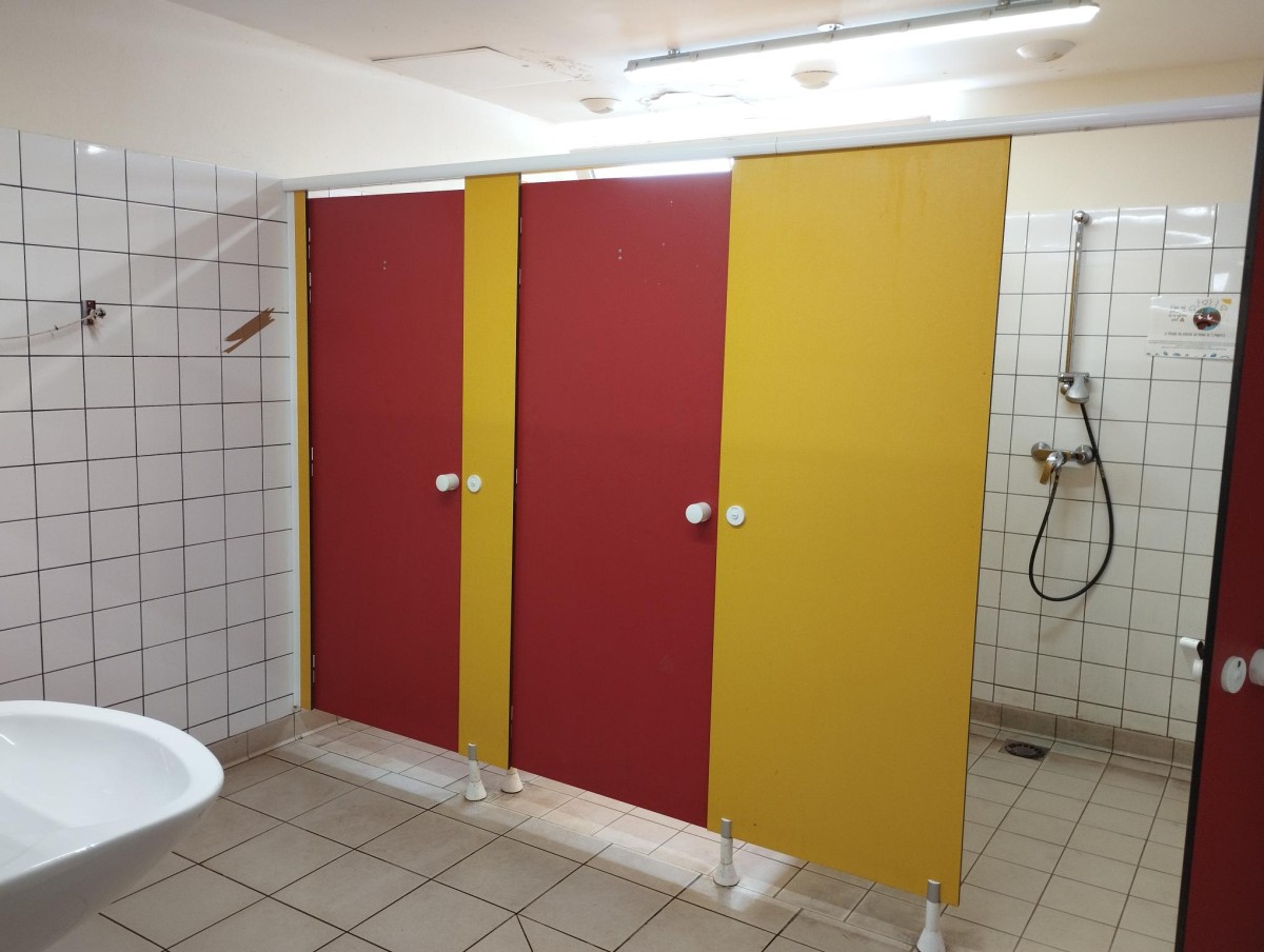 A proximité immédiate du terrain sont accessibles toute l’année des sanitaires chauffés, avec 3 lavabos, 3 WC (dont 1 accessible PMR) et 3 douches (dont 1 accessible PMR).